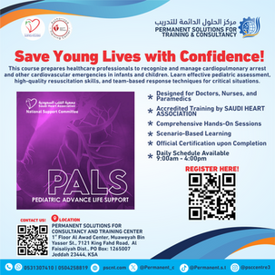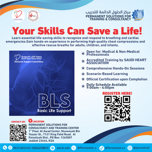 At Permanent Solutions for Consultancy and Training Center (PSC Center), we offer a wide range of accredited training programs designed to build skills, enhance careers, and promote excellence. Our courses include internationally recognized healthcare certifications from the American Heart Association (AHA) and Saudi Commission for Health Specialties (SCFHS)—such as BLS, ACLS, PALS, NRP, and Heartsaver programs—delivered through hands-on, scenario-based learning.